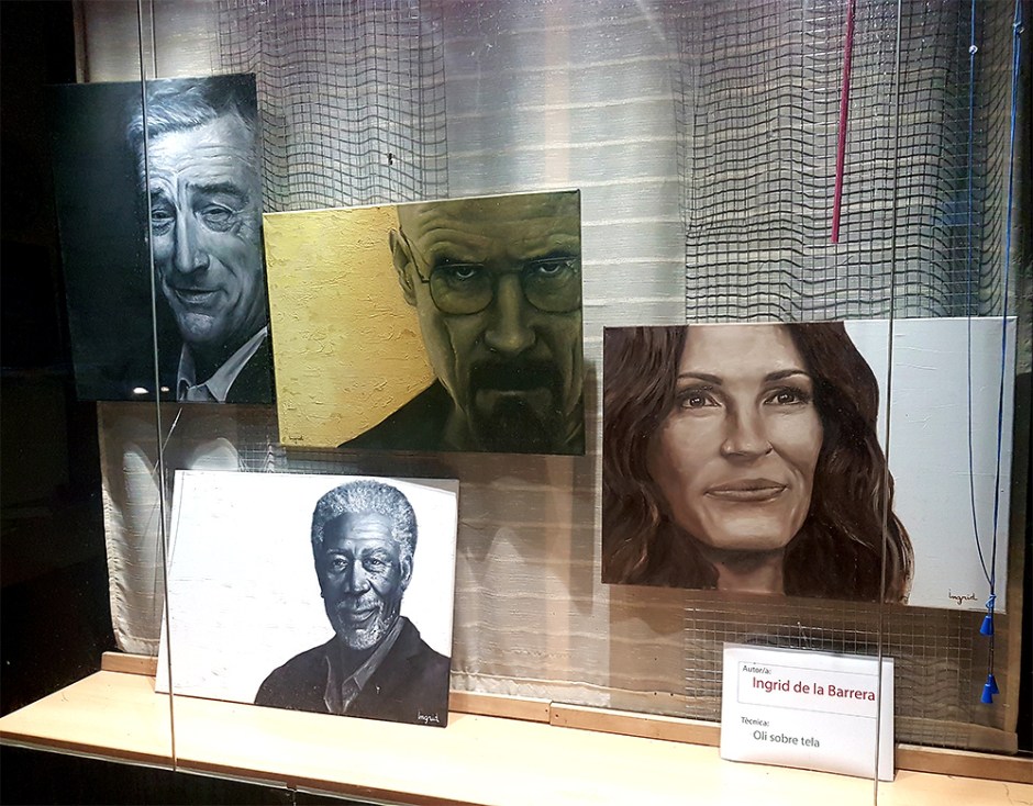 Li encanta fer retrats de gent famosa, com els que ens ha deixat per fer una petita exposició al nostre aparador: Julia Roberts, Morgan Freeman, Robert de Niro o Bryan Cranston estaran aquest mes d’octubre amb nosaltres!!!